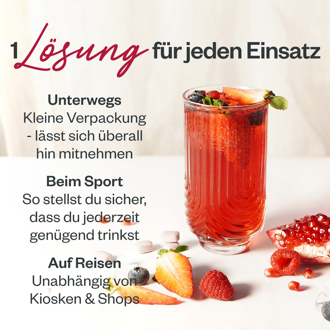Ein Beutel, 20 Tabs, bis zu 12 Liter Geschmack– klingt nach einem Deal? Unsere Drop&Drink Tabs sind die Allrounder für deinen Alltag.