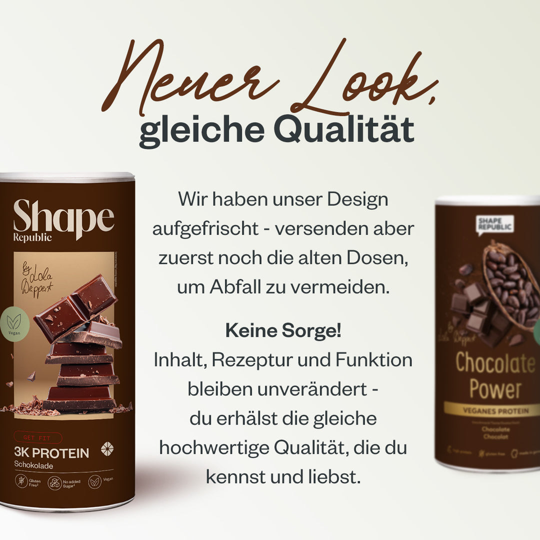 Proteine sind die Bausteine aller Körperzellen: Sie dienen also nicht nur dem Muskelaufbau und dem Muskelerhalt. Deine Haut besteht zum Großteil aus Proteinen. Die Enzyme, die deine Nahrung verdauen sind Proteine und viele der wichtigen Hormone in deinem Körper entstehen aus Aminosäuren, die wiederum die Bausteine von Proteinen sind. Machst du eine Diät und du vergisst deinen Körper mit Proteinen zu versorgen, dann kann es zu Heißhungerattacken kommen. Wenn es dir im Alltag also schwer fällt deinen Tagesbedarf an Proteinen zu decken, dann ist deine einfache Lösung unser Proteinpulver in deine Mahlzeiten oder als Shake zu integrieren.