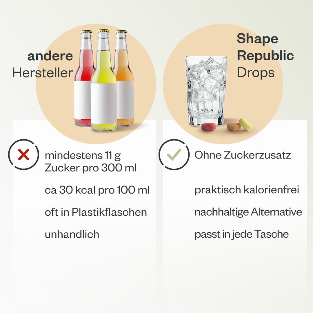🍹 Wasser trinken, aber bitte mit Style! Unsere Drop&Drink Tabs sind dein gesunder Durstlöscher: Kein Zucker, nur 1 kcal pro 100 ml und 100 % vegan