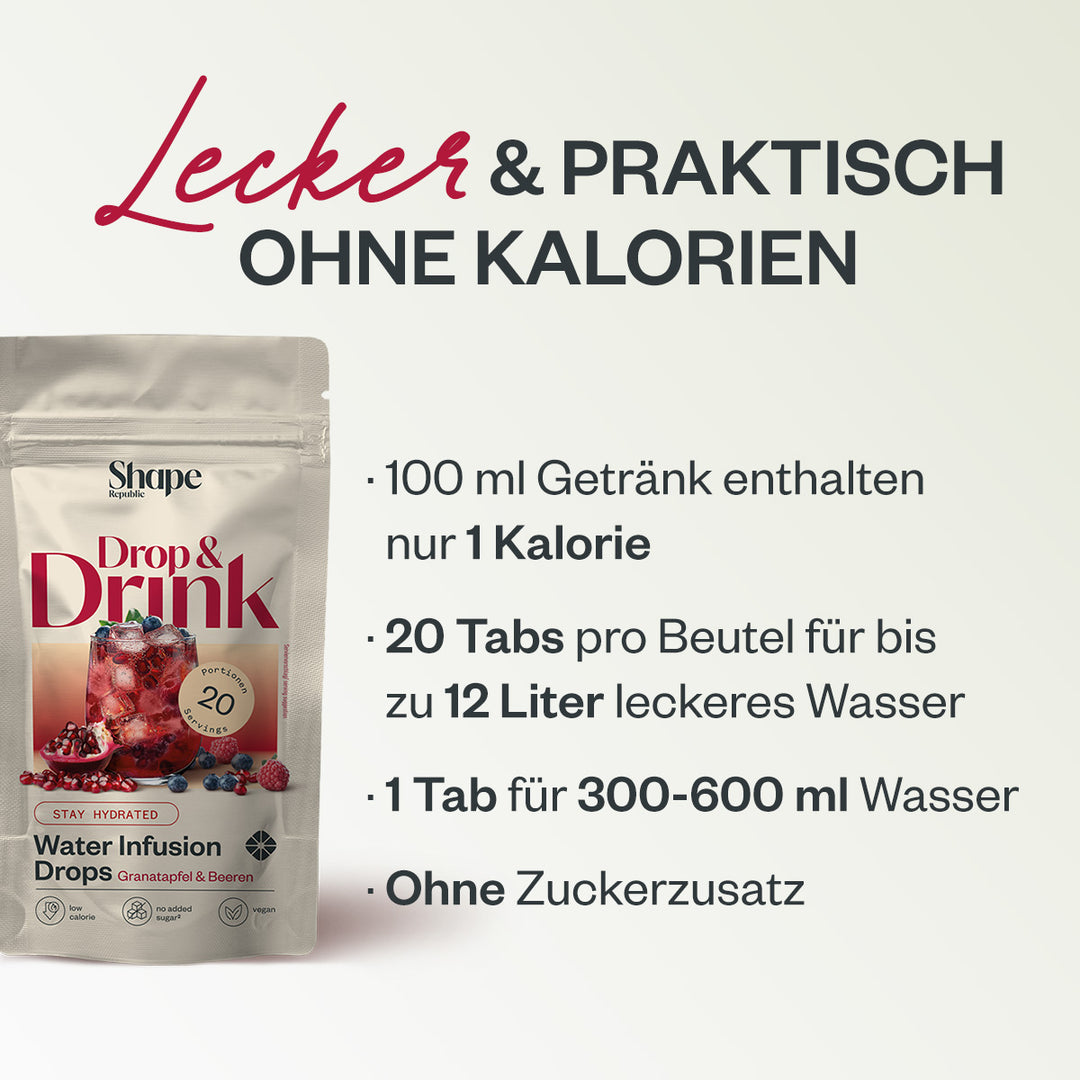 Verwandle langweiliges Wasser in ein köstliches, erfrischendes Getränk mit unseren Drop&Drink! Einfach ins Wasser mischen und den Geschmack nach Belieben anpassen – für ein einzigartiges Geschmackserlebnis.