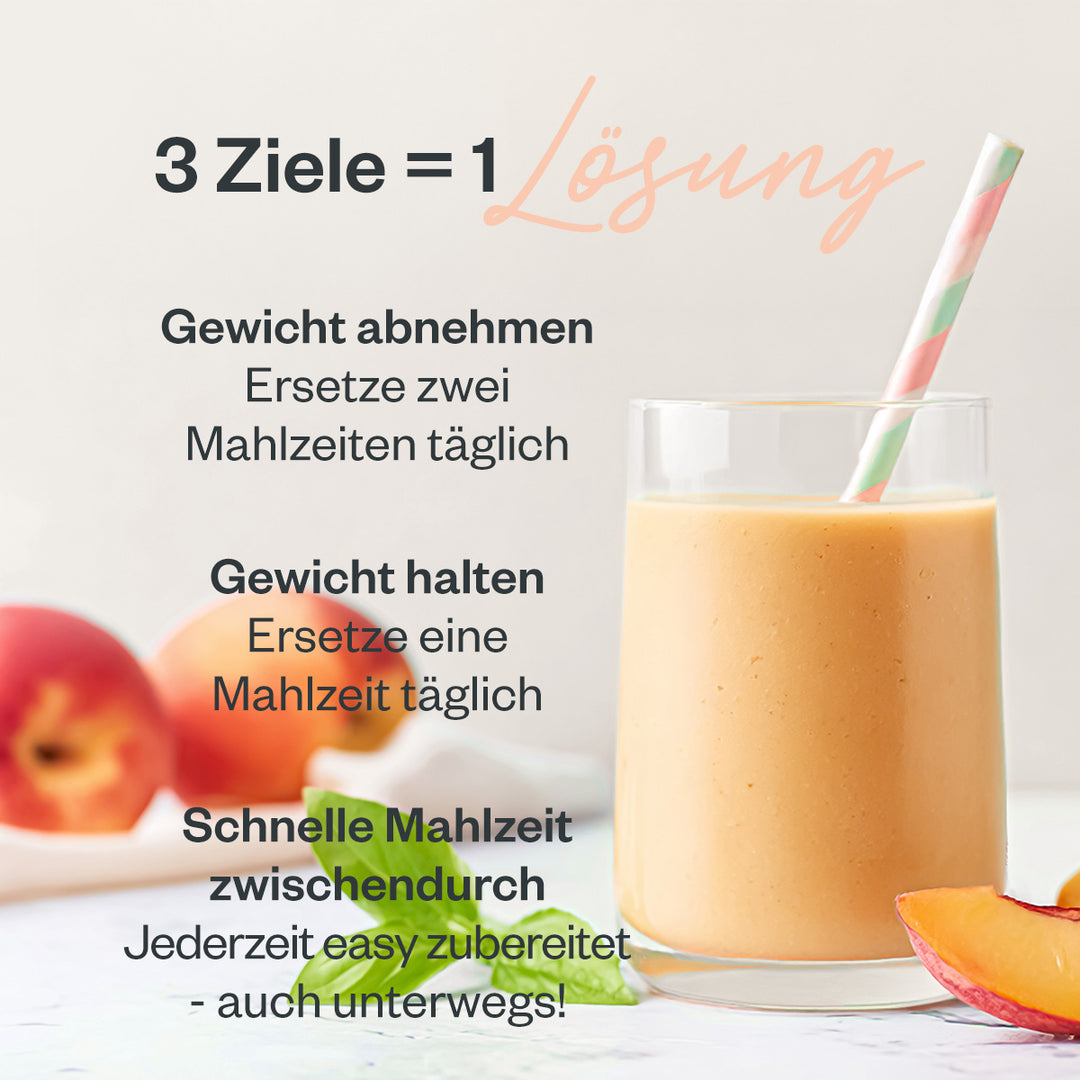 Du solltest maximal zwei Mahlzeiten am Tag durch einen Slim Shake ersetzen, wenn du Gewicht verlieren möchtest. Die Slim Shakes können dich über einen begrenzten Zeitraum dabei unterstützen, Gewicht zu verlieren. Ersetze eine Mahlzeit durch einen Shake um dein Gewicht zu halten. Achte außerdem auf eine ausreichende Flüssigkeitszunahme. Auch nach einer Diät kannst du die Slim Shakes wie z.B. Proteinpulver nutzen um deine Mahlzeiten geschmacklich aufzupeppen oder mit Nährstoffen anzureichern. Eine gesunde Lebensweise ist wichtig: Die reine Einnahme von Mahlzeitersatz Shakes ohne andere Lebensmittel über einen gewissen Zeitraum, kann nach Absetzen der Shakes zum sogenannten "Jo-Jo Effekt" führen. <i>Quelle: Hamann, A. "Adipositas." </i>