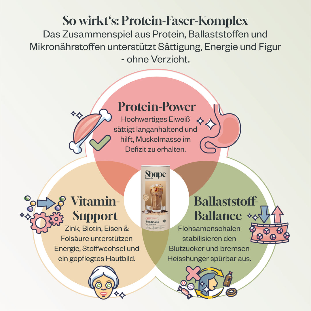 ✅ Unser Slim Shake? Cremig, smooth und voll im Geschmack. Dank unserer feinen Rezeptur und in Kombination mit dem Shape Republic Shaker bekommst du im Handumdrehen eine samtige Konsistenz – ganz ohne Nachhelfen.